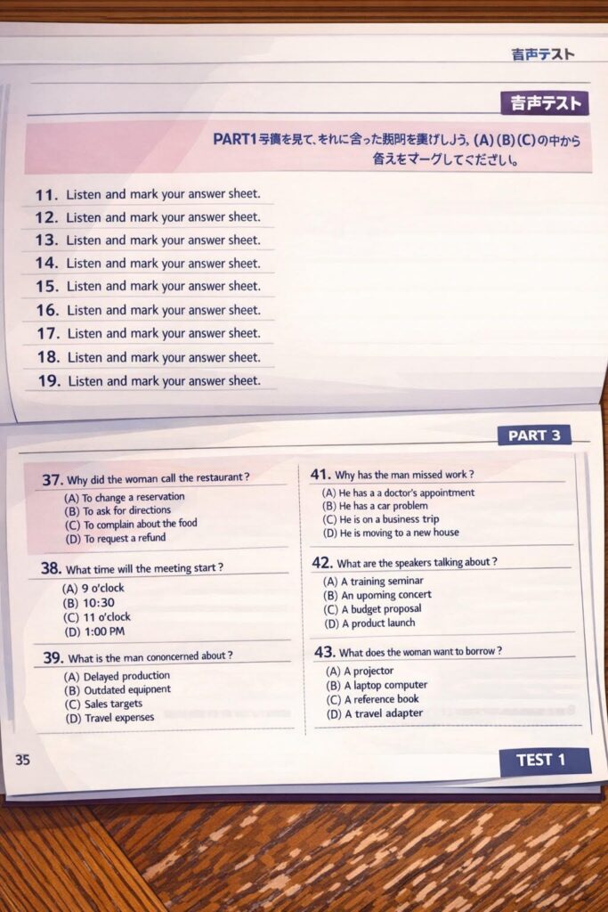 リスニングやリーディングの流れ、問題の出題パターンなどが公式問題集と非常によく似ています。